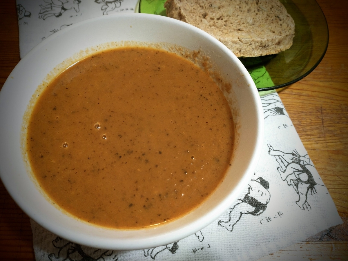 出来上がったスープはトマトスープですが、トマトだけのスープより好みの味。